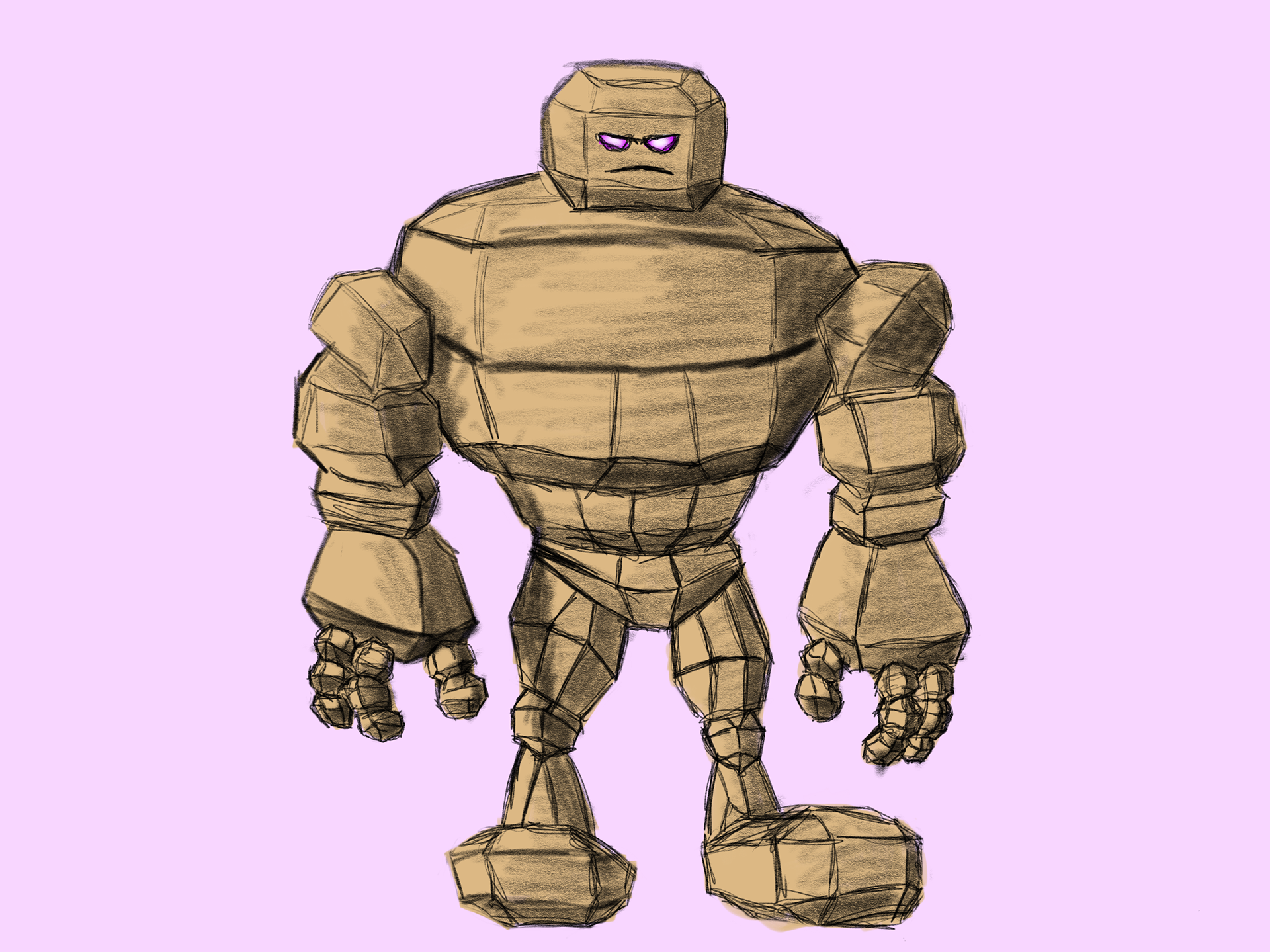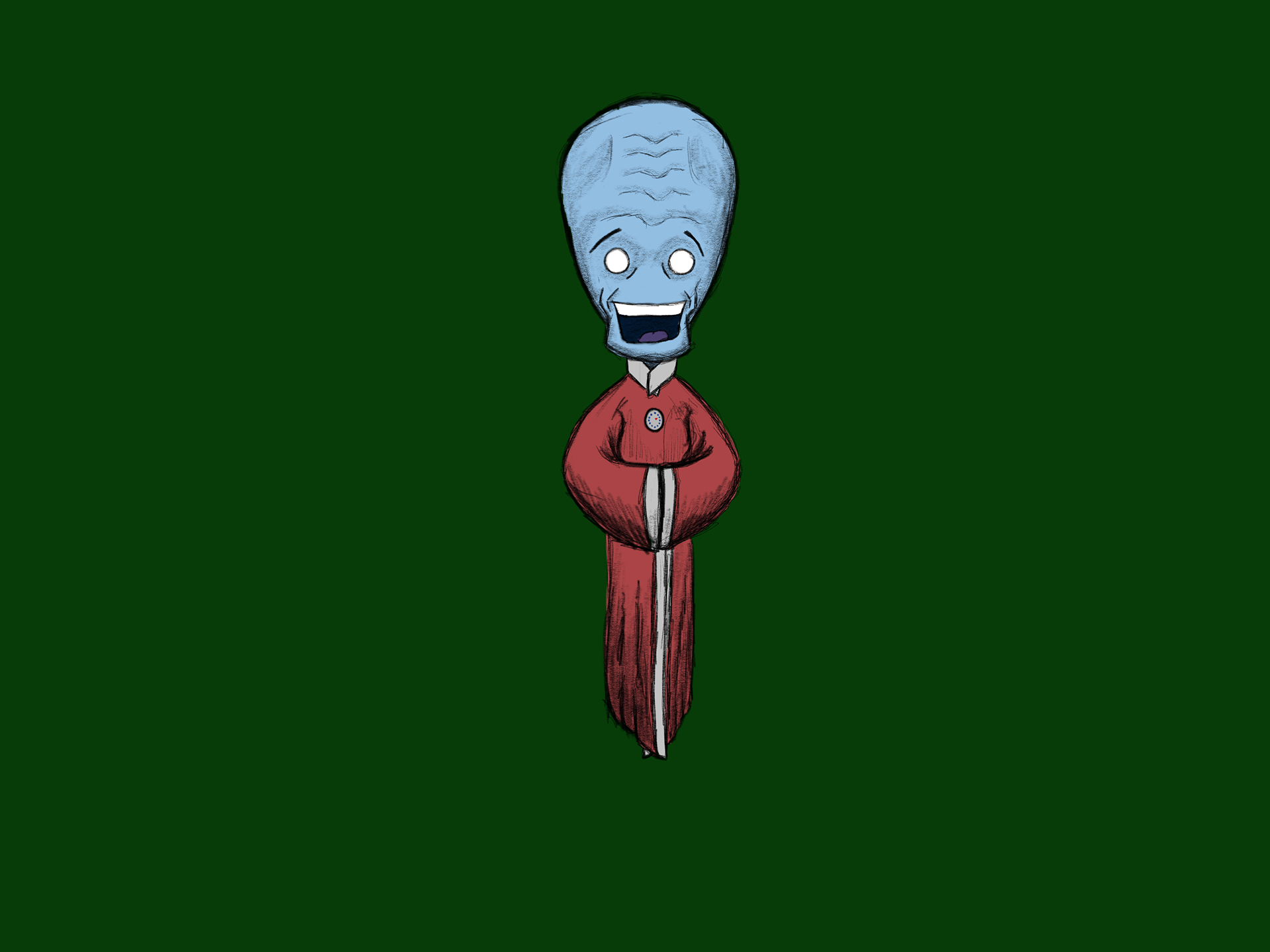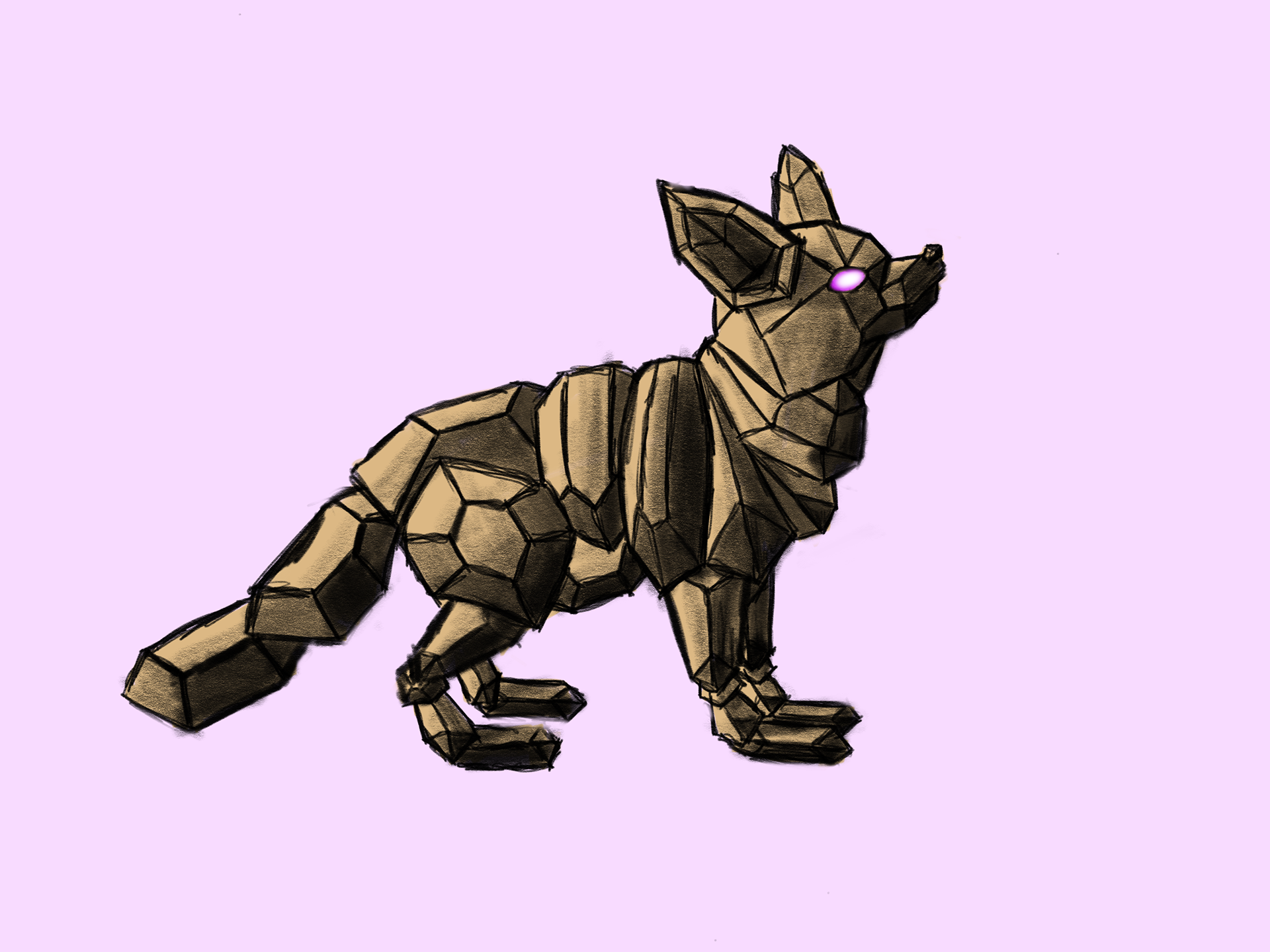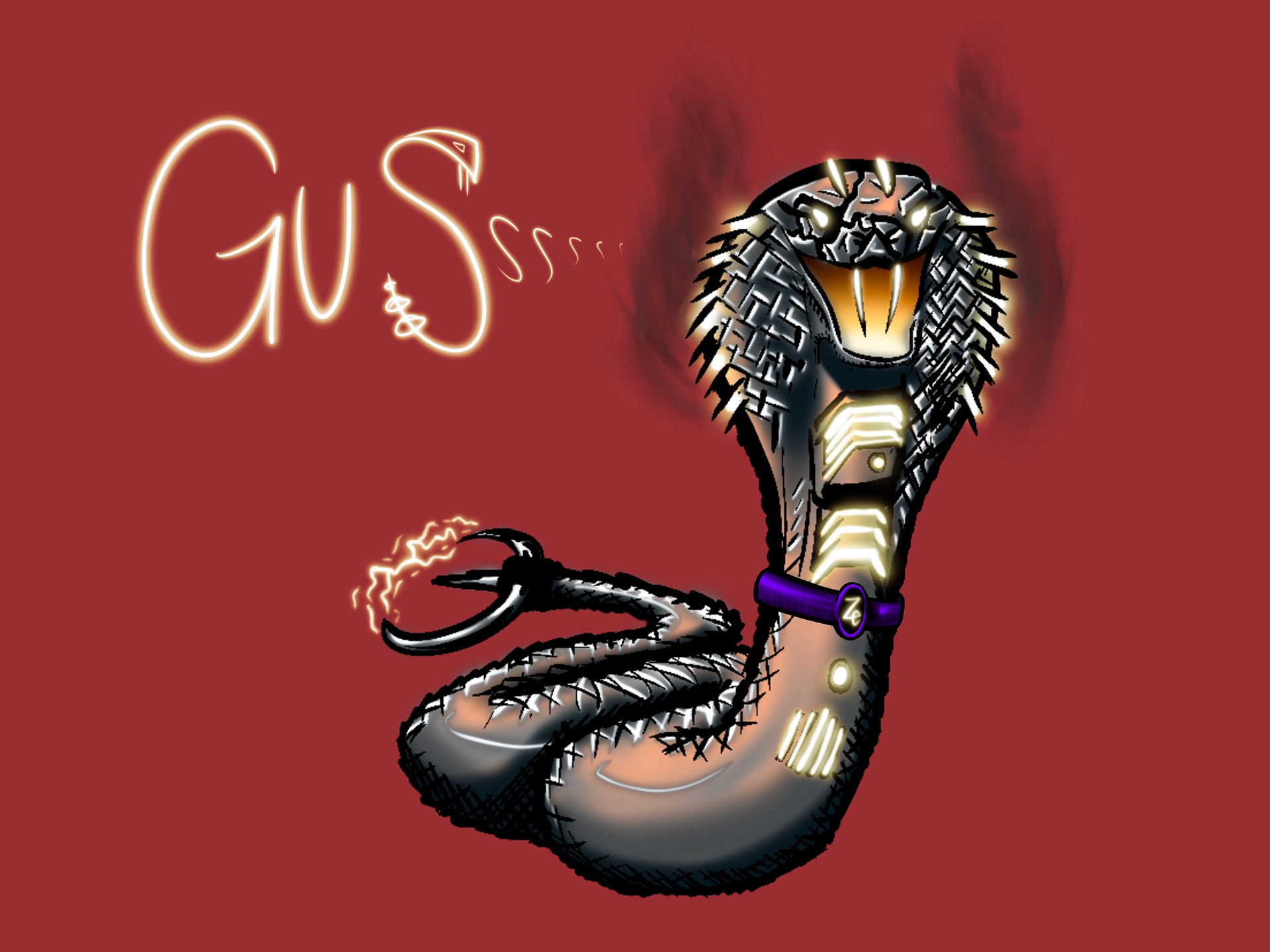 Ze was a character I created for my 3D class but began with a 2D drawing. He's accompanied by his robo-pet, Gusss...