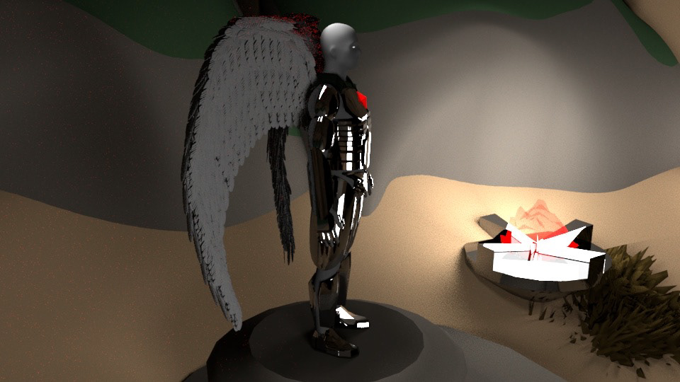A prompt to build an environment around an everyday sedan, I decided to throw it into a science-fiction inspired desert, and put the focus on a car more attuned to the environment. You couldn't really see our little four wheeled friend, but I gave him some headlights to let you know where he is.